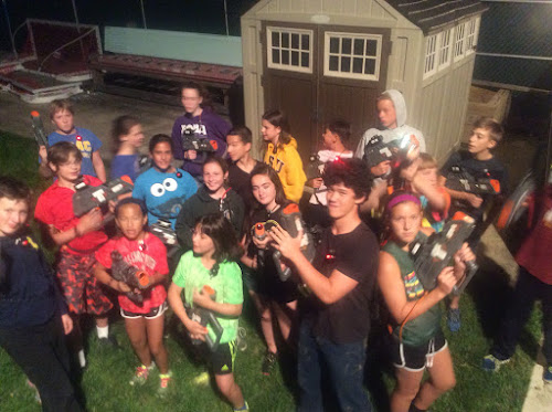 Sunday the sun came out to dry the area so we could have a night of lazor tag at the pool! Thanks to the parents who stayed until 11:30 so that we could play. Rumor also has it that the little dolphins beat the older kids team several times. True to form the older kids complained it was eaiser for the little ones to hide!